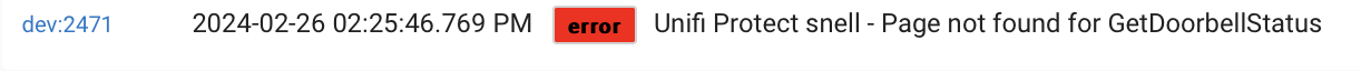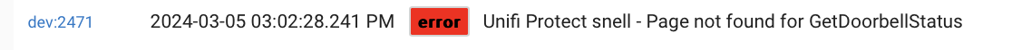 Something is just not working correctly. The doorbell is not registering pushes still. And the doorbell stops logging any events. A Refresh on the parent re-starts the event logging. Here are errors from debug. Note the camera with errors is a G5 bullet, not the doorbell.