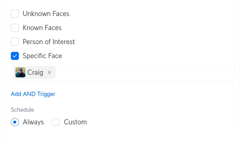 The unfortunate thing is that Unifi Alarm manager doesn't have a way to send variables through through the webhook call. This means you need to have it be very specific when you setup the alert and setup a different alarm for each person.