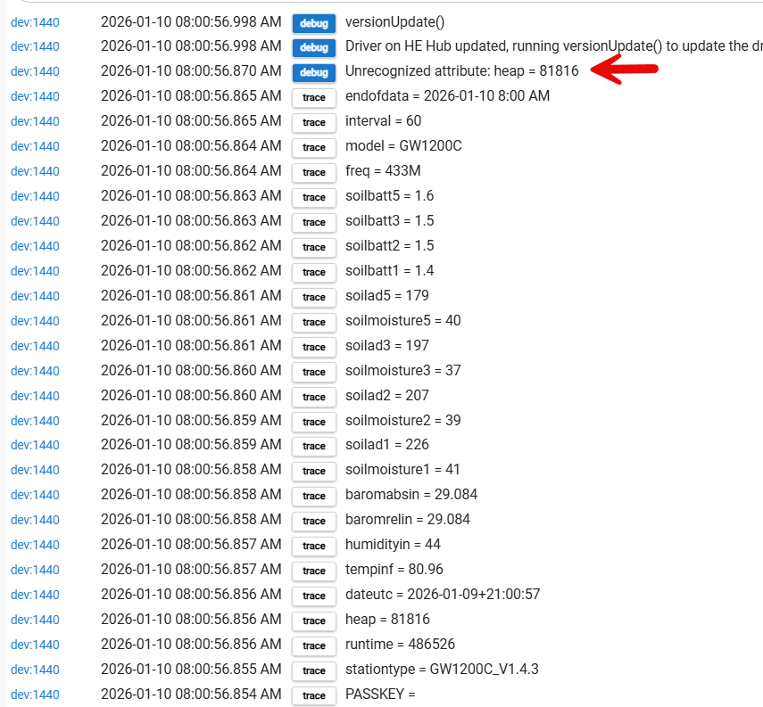 Hello, I've been using this driver for a couple years now with great results but randomly one of my sensors has started reporting a bunch of info logs. No other sensors do it and I have 7 total. Any idea why this might have changed?
