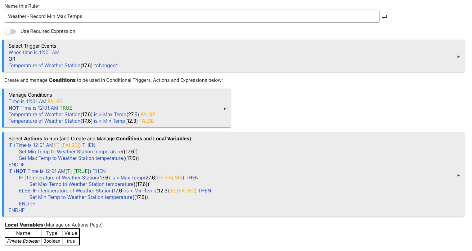 I decided to take a swing a making a Min/Max Temp Rule using the logic we kicked around a while back - and I think it works: