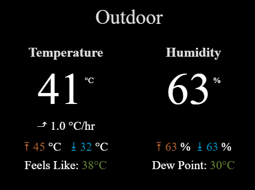 A while back I experimented to see how close I could get to an Ecowit tile using Tile Builder and this is what I came up with. This tile is 945 bytes so it would work locally or remote. All the numeric values are pulled from devices on an event basis. Not from an Ecowitt but Tile Builder doesn't care what the underlying devices are and they can be mixed together.