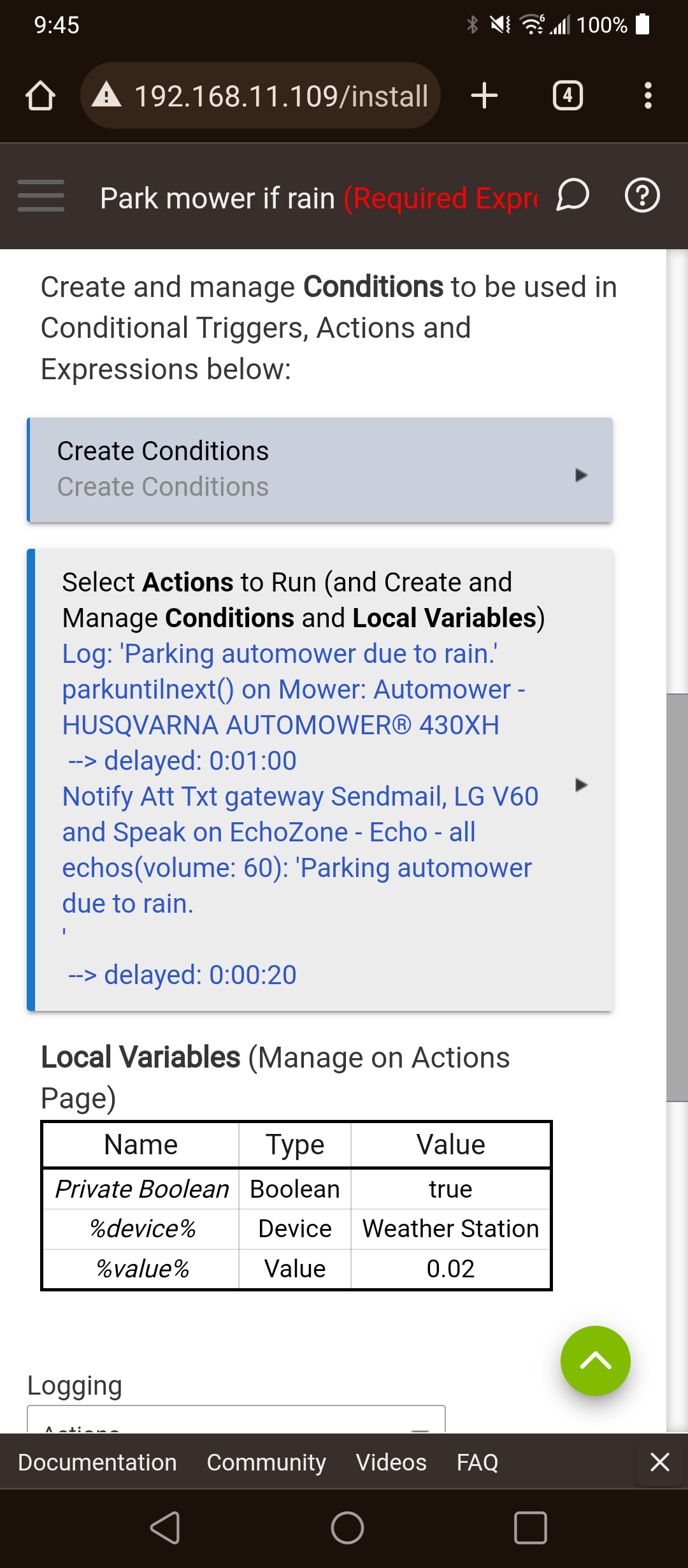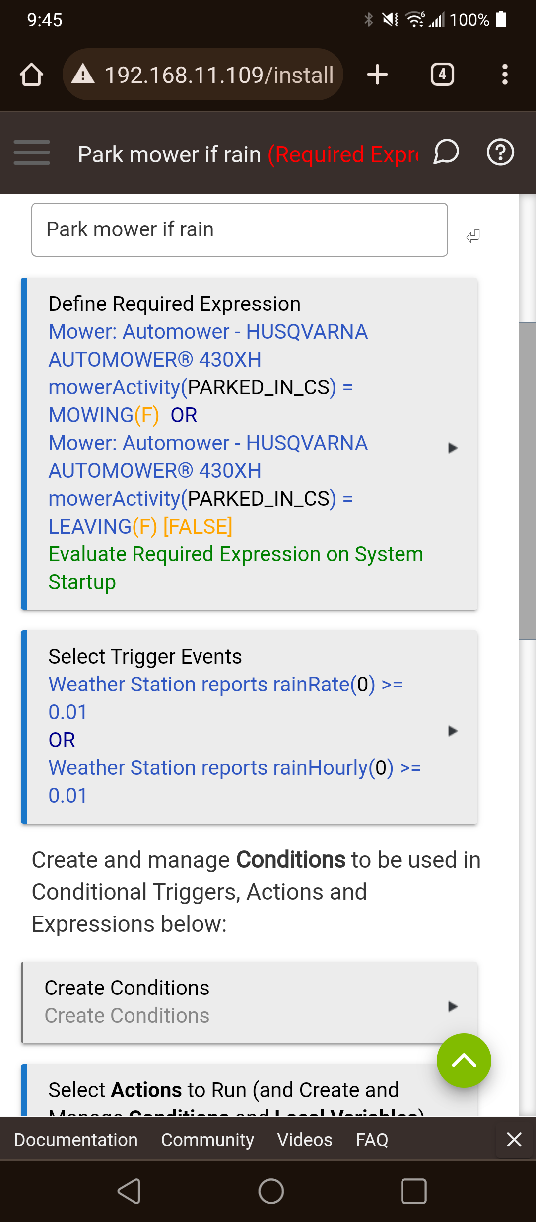 We are back in the u.p. of mich and my rain rule actually kicked in and sent the automower home. Gotta love automation.