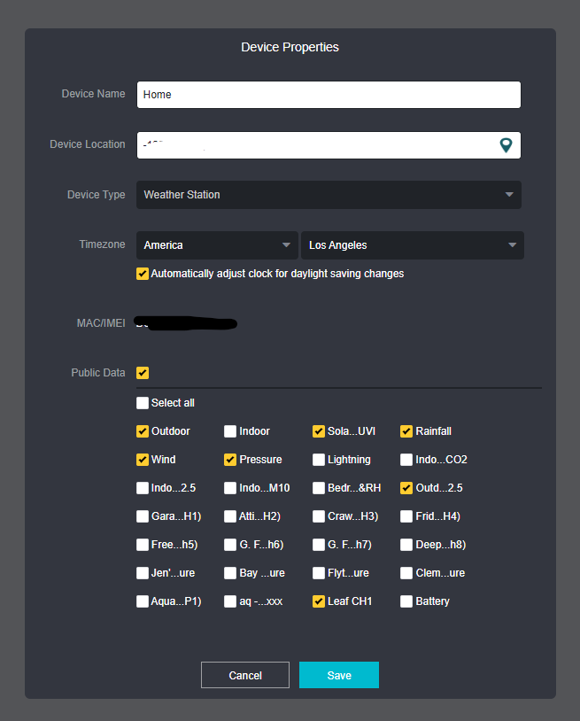 It's actually worth mentioning that people should check their Ecowitt dashboards because as I recall, it defaults to sharing all your sensors. At least it used to, I found my account and a friend's that way when I first started using Ecowitt stuff. So if you do not want your "Crawlspace Playroom," "Justice Shed," and "Private Time Area" temperatures shared with the world, check your gateway settings under Menu/Devices/Pencil icon. There, you can select which sensors are public.