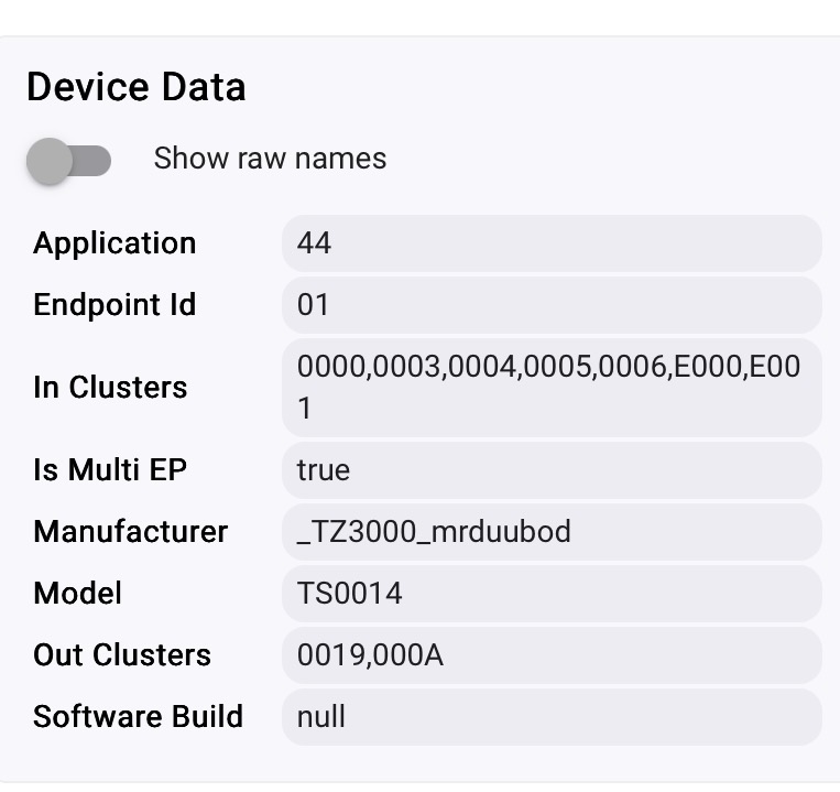 Hello @kkossev, I have a couple of very new Zemismart Smart Touch Switches (4-Gang) The model number on the box says: ZN-RS04E-FF. Using your driver it only seems to detect them as one gang with no child devices. I AM using this driver successfully with 1 and 2 gang switches. Any ideas what I am doing wrong?
