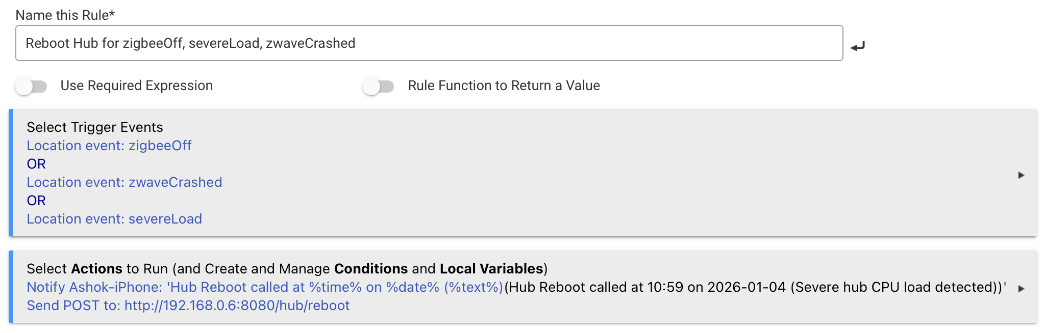 The scheduled reboot won't help if the hub is already locked in a state where automations have stopped running, but again that isn't something most users encounter. Some people use a WiFi smart plug as a backup means to cut power to a locked-up hub, but if you're using a battery like the one I linked, you'd have to cut power to that and then wait for the battery to run down before trying to power the hub back up.