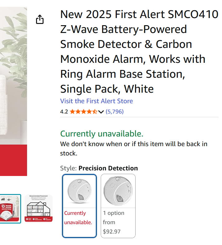 My Z-Wave First Alert detector from 2017 is doing the 5 chirp end of life every couple minutes, so the batterys have been pulled. Looking at the Amazon order it was $44 back then. Today they want $75 for the next available model.