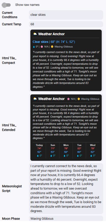 Introducing the Advanced Meteorologist Report. This application is designed to generate a TV-anchor style meteorologist report by combining live local weather station data with macro-forecast APIs. It's highly customizable, fully automated, and comes with a companion device driver that creates beautiful HTML tiles for your dashboards.