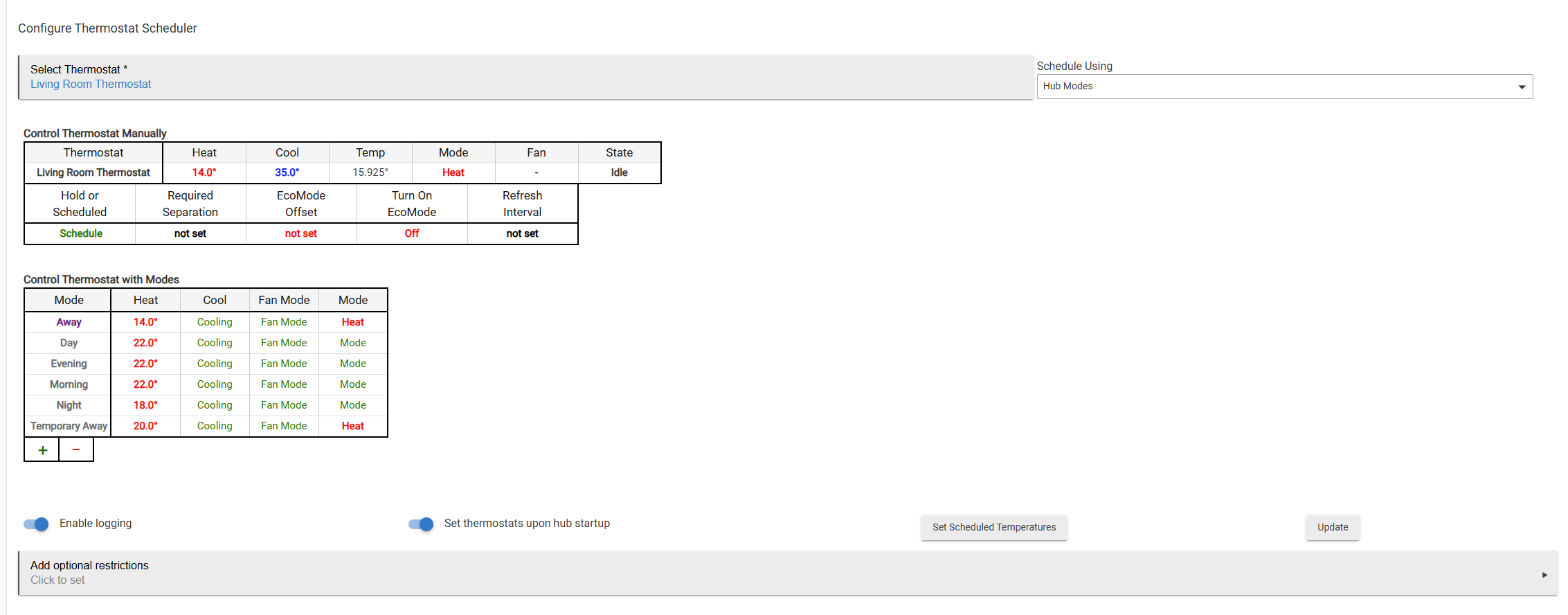 I had released a V2 of this app/driver that used the built in virtual thermostat device but I did not like the limited control I had over it (originally to make it compatible with Homekit), but scrapped the project soon after, I will be merging the new logic code and some of the other new features/upgrades I had added to it and keep going on this setup. My other project is on hold for a while so I'll have some time to work on this one a bit before summer comes in full blast and the wife takes out her ToDo list