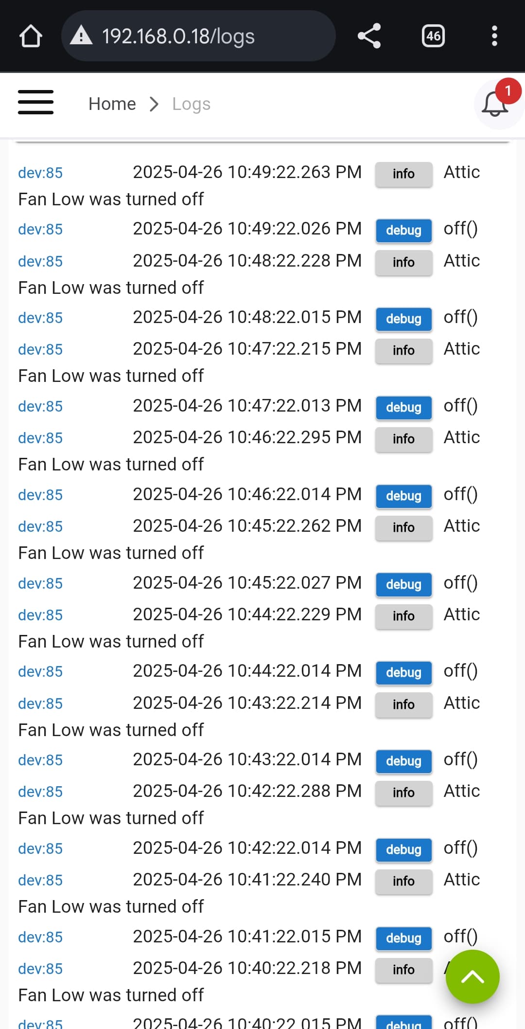 I have been trying to use this app but my log is flooded with off requests for the switch. I was having some network sluggishness recently and I think it's related to two of these virtual thermostats constantly sending off requests to the linked switch. Is this the expected activity?