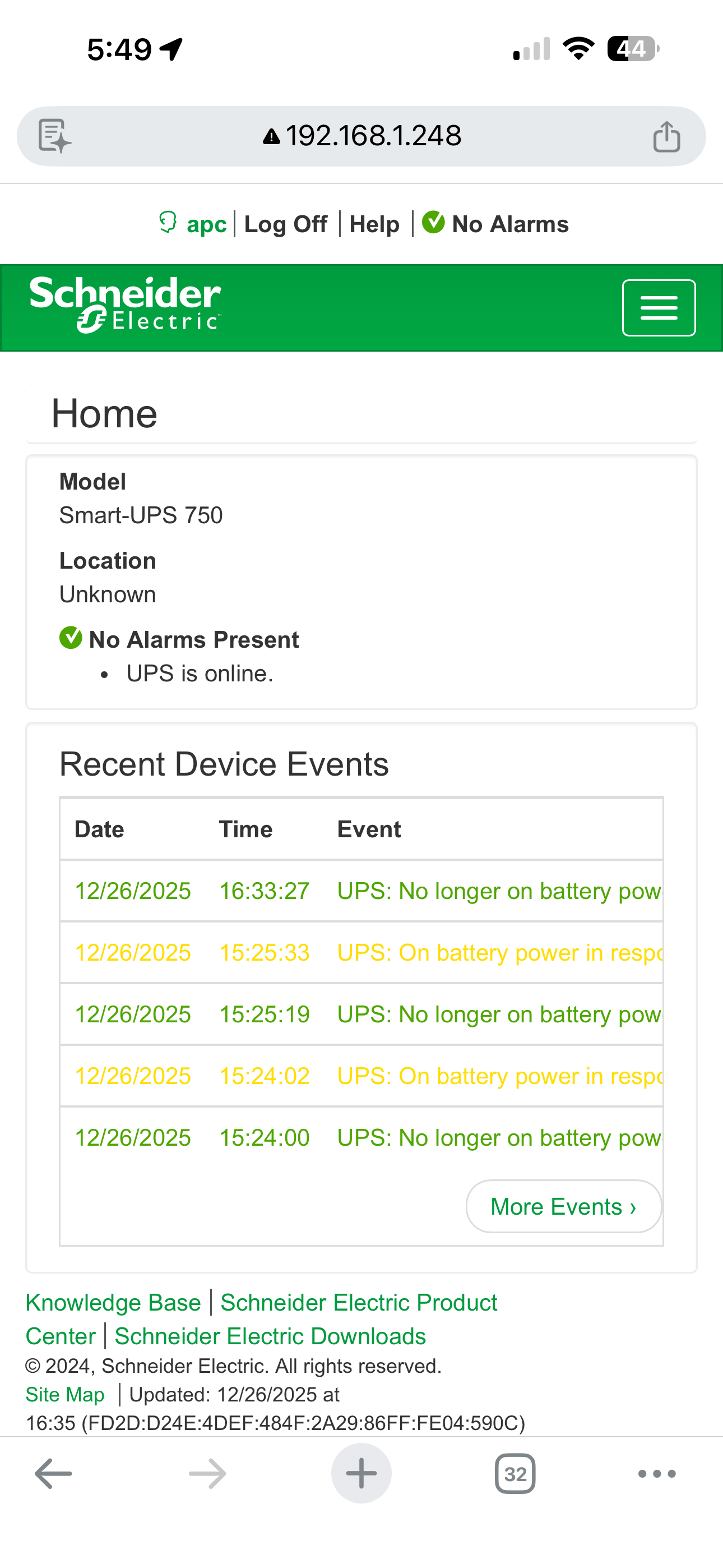 My test UPS units do not report battery type or anticipated replacement date, so those attributes are currently excluded.