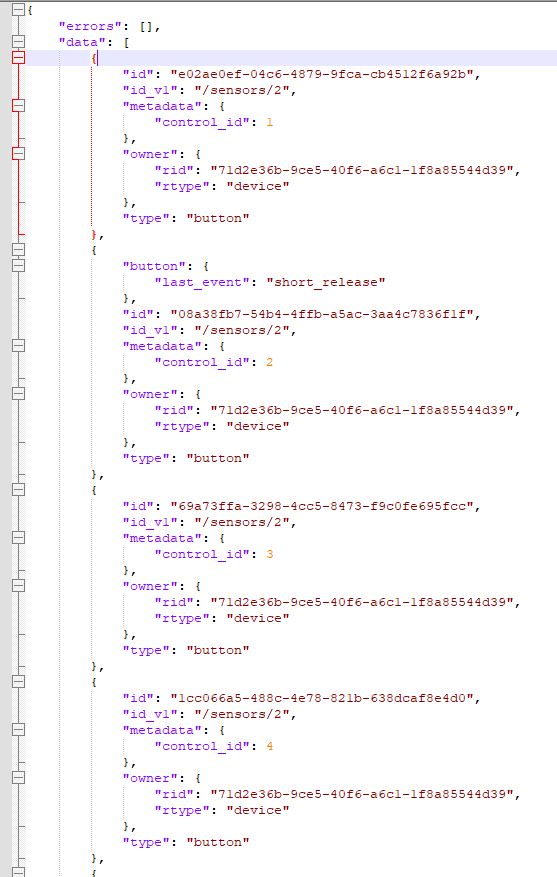 My issue is that in the v2 API, I don't see any way to "know" that the button events are from the same button. They seem to have arbitrary IDs, and the only connection is id_v1, which is something I'm hesitant to rely on for the reasons above. (It's possible the method of getting the "all devices" list in the v2 API would tie these together somehow, but I haven't looked at that lately--and am still using v1 in CoCoHue for that because v2 wasn't complete enough last time I tried.)