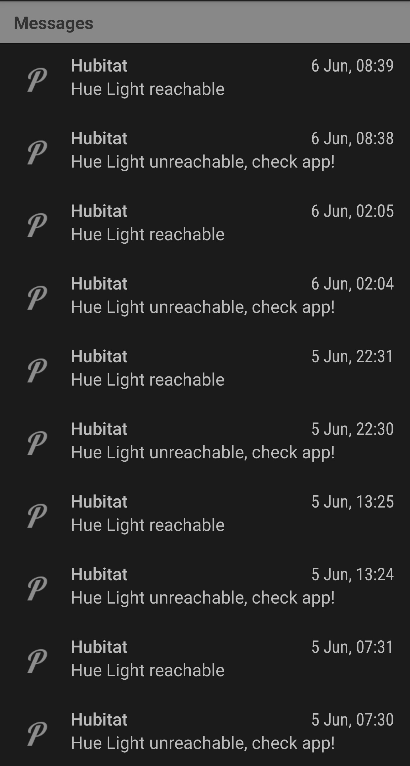 I setup the alerts as there was one time where this light was totally unreponsive and I had to do a manual power off/on to get it working again.