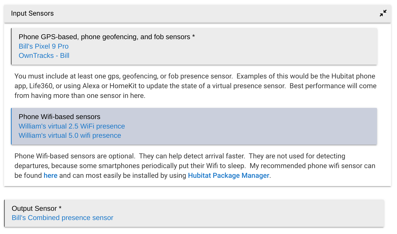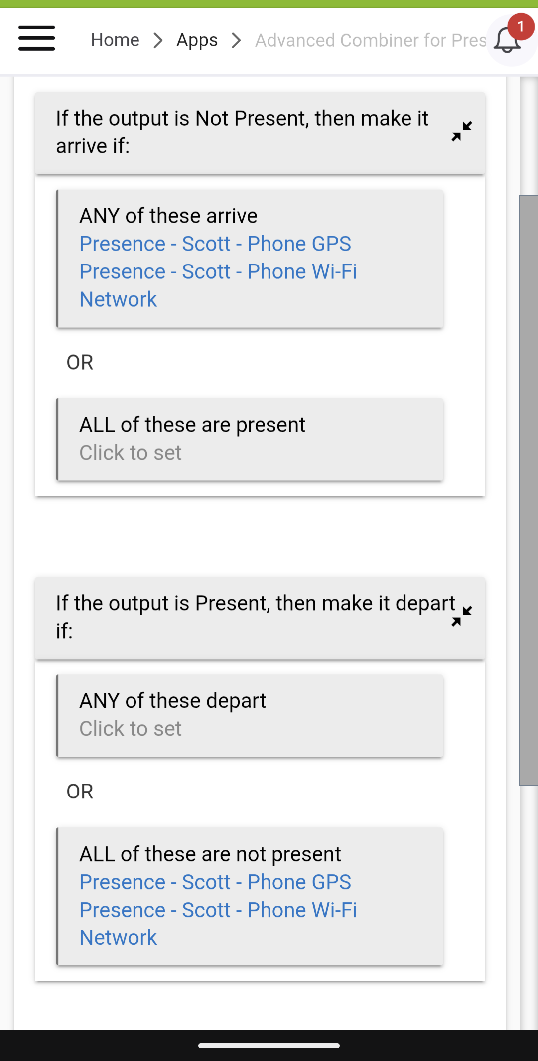 I'm wondering if this is the intended behavior. I've only had this issue lately, like the last few months. Occasionally, when my phone GPS thinks I've teleported outside the geofence and reports not present, the combined presence also changes to not present. I thought the standard container was supposed to prevent that? I've used this app for years now with no issues until recently. Sometimes I'm at home and all my lights just turn off because Hubitat thinks everyone has left and no one is home.