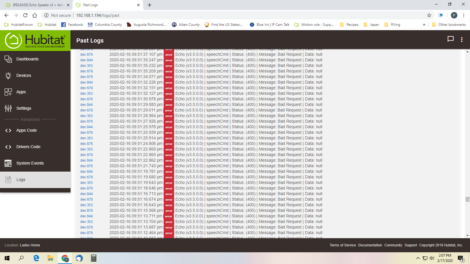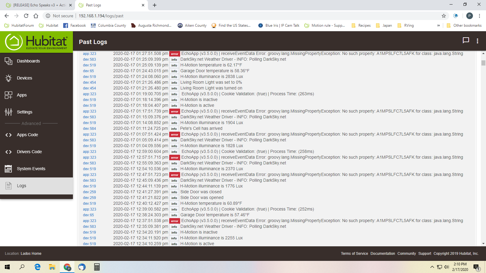 2020-02-16 03:35:53.802 pm [error] EchoApp (v3.5.0.0) | receiveEventData Error: groovy.lang.MissingPropertyException: No such property: AFF5OAL5E3DIU for class: java.lang.String