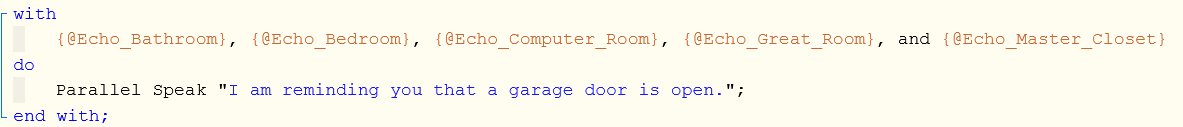 I have some rules that send a echo speaks VoiceCmdasText request to a device in my garage, I do this because the device will give the end of request tone, so I use that device since the tone won't disturb me if it goes off in the middle of the night.