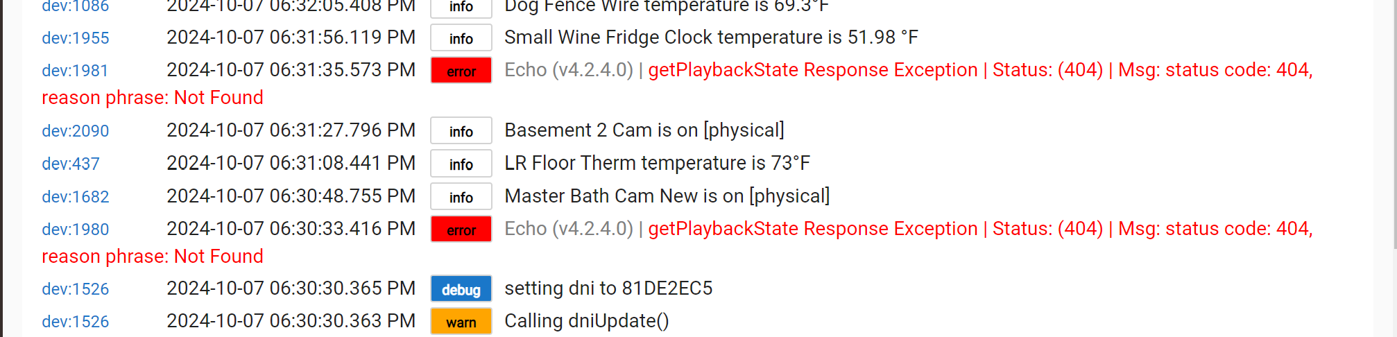 suddenly getting this error on two of my devices every 1/2 hour.. any ideas.. when i try a manual voice command it works fine so they appear to be functioning.