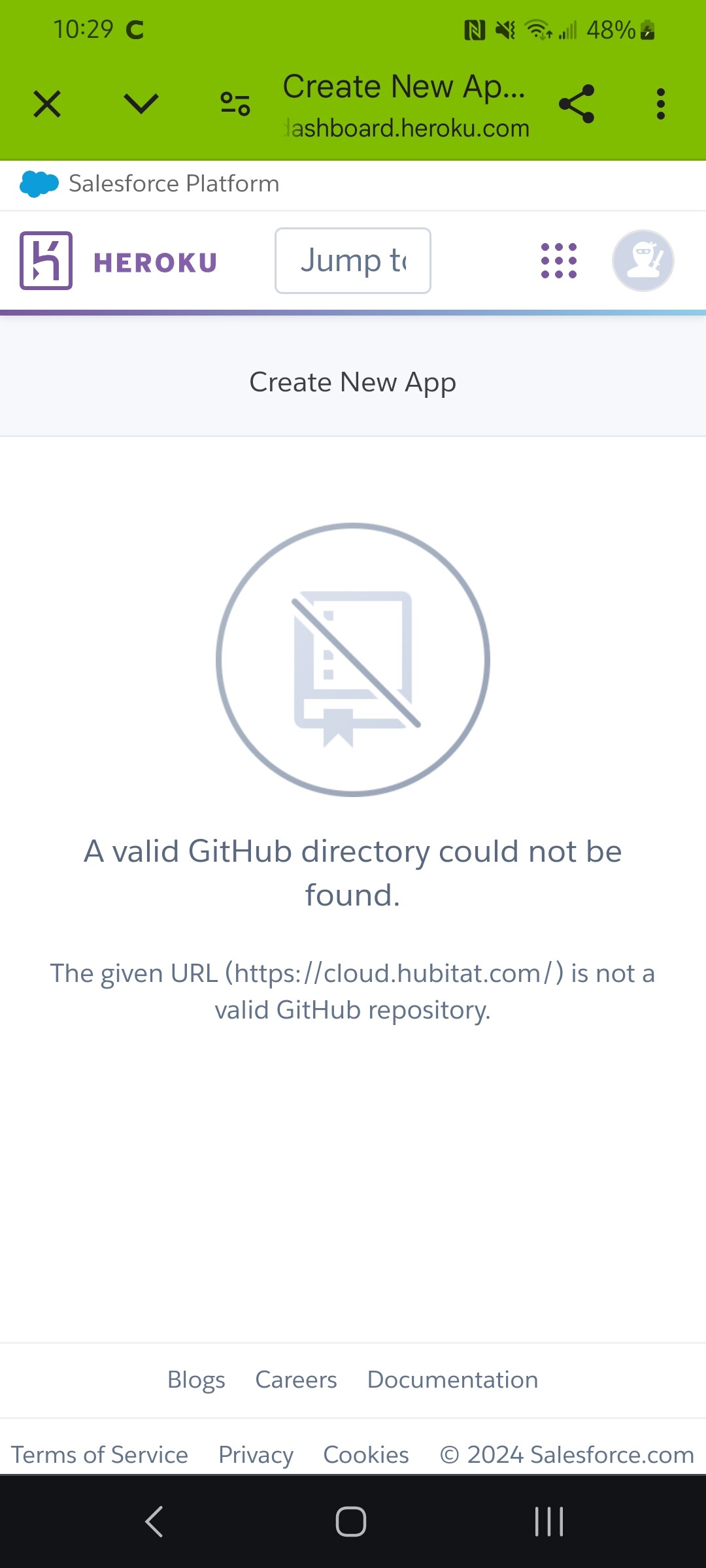 I am trying to install Echo Speaks on a new Hub, but when in Heroku server setup, after logging in to Heroku I get this error: