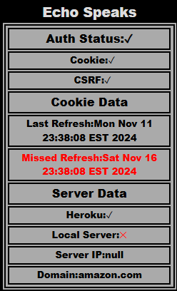 However, everything seems to be running OK and Echo Speaks shows this: