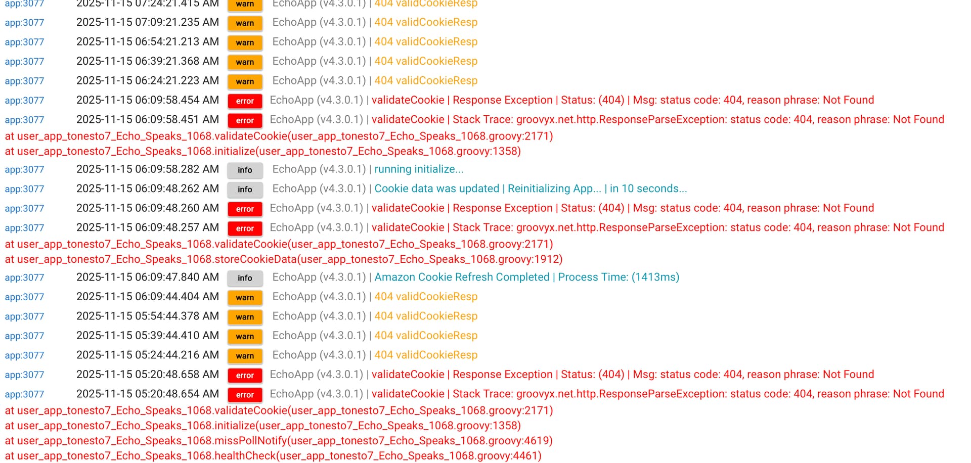 AFAIK Echo Speaks is working just fine. Cookies refresh fine too. But my logs have tons of 404 errors like everyone else.