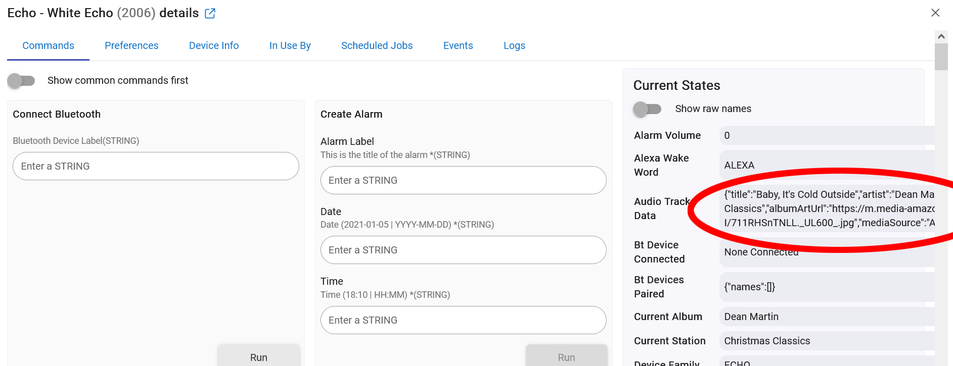 This question is about track data of Amazon music on an Echo. The music starts playing before the HE Echo device track data is updated, by about 2-5 seconds. I am cycling between Amazon playlists, Christmas Classics music and Christian Christmas music, changing playlists every 3 songs. But the next song starts playing, for about 3 seconds, before the track data updates. That messes up my programming to cycle through the above playlists. I'm changing playlists based on when the track data changes (ie the next song starts). Is this track data delay inherent to ES? Suggestions on programming?