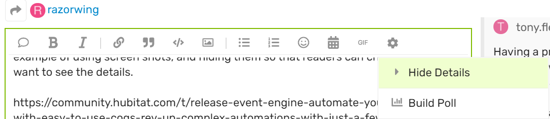 We also try to "hide" logs and other content so that it doesn't create long scrolling requrirements to read the thread, especially on mobile devices. Here's a great example of using screen shots, and hiding them so that readers can choose if they want to see the details.
