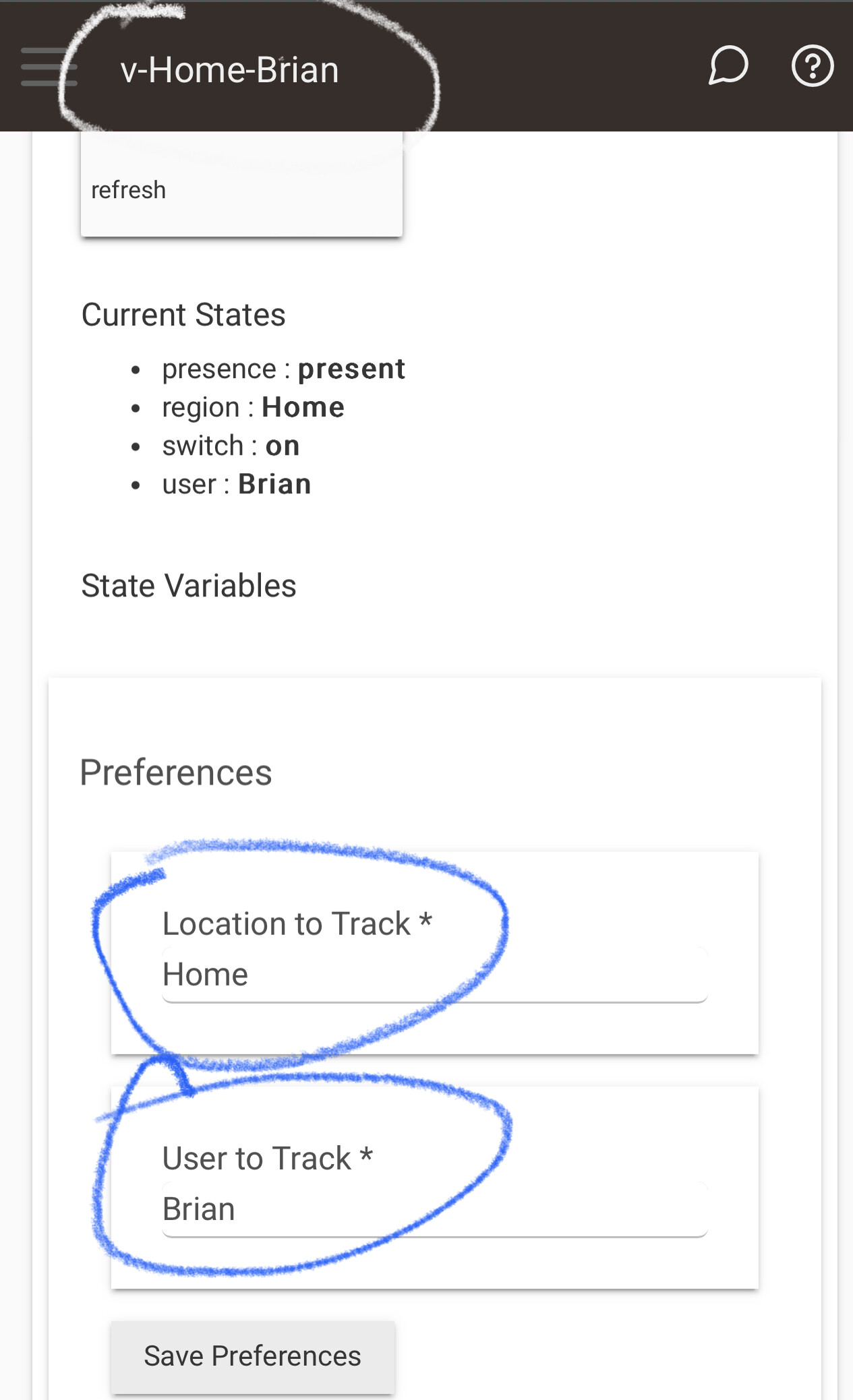 I admit it’s confusing and difficult to explain. The device name does not matter (v-Home-Brian in my case to represent a virtual sensor). What matters is the user and the name of your Geofency location/region. In my case, the location/region is named Home within Geofency and the user is Brian.