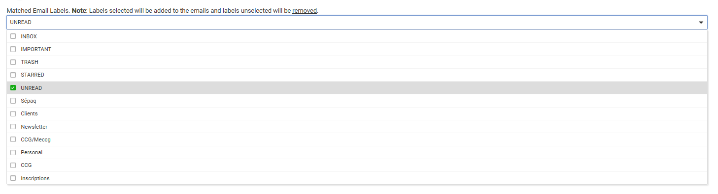 Ok, if I check UNREAD label under the Matched Email Label this will remove the UNREAD label right? After that, the email will not be found because my query search only for "UNREAD" email, am I correct?