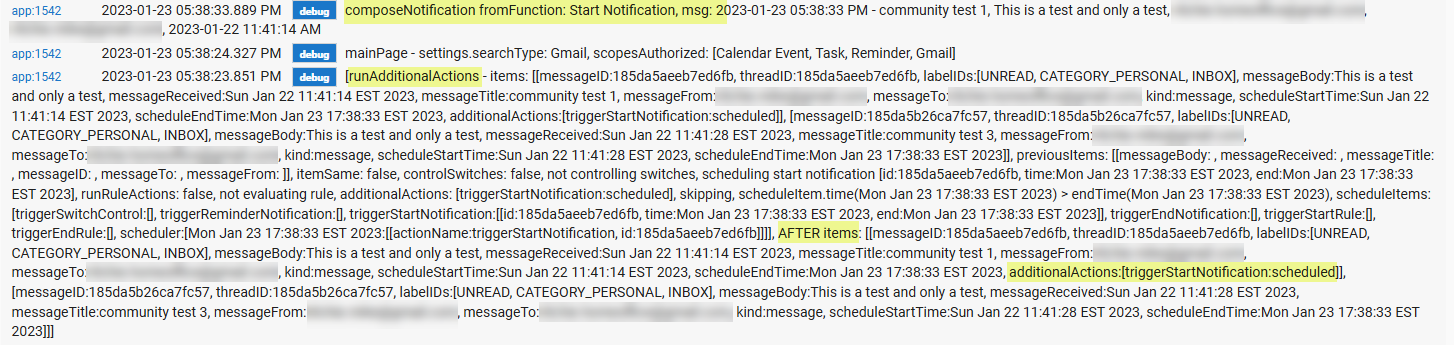 - Clicking Done automatically invokes an immediate search so you should have debug logs shortly and can validate the emails within Gmail were updated.
