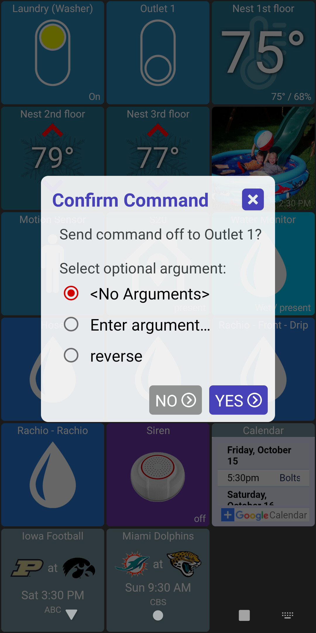 allow arguments to be sent with a command (from device details dialog)