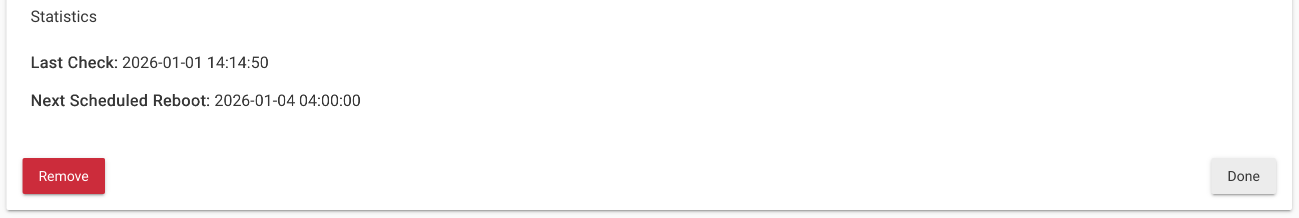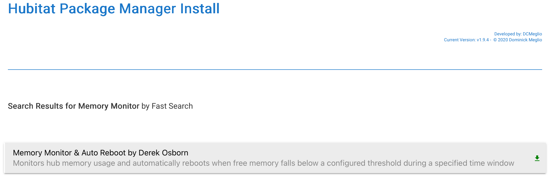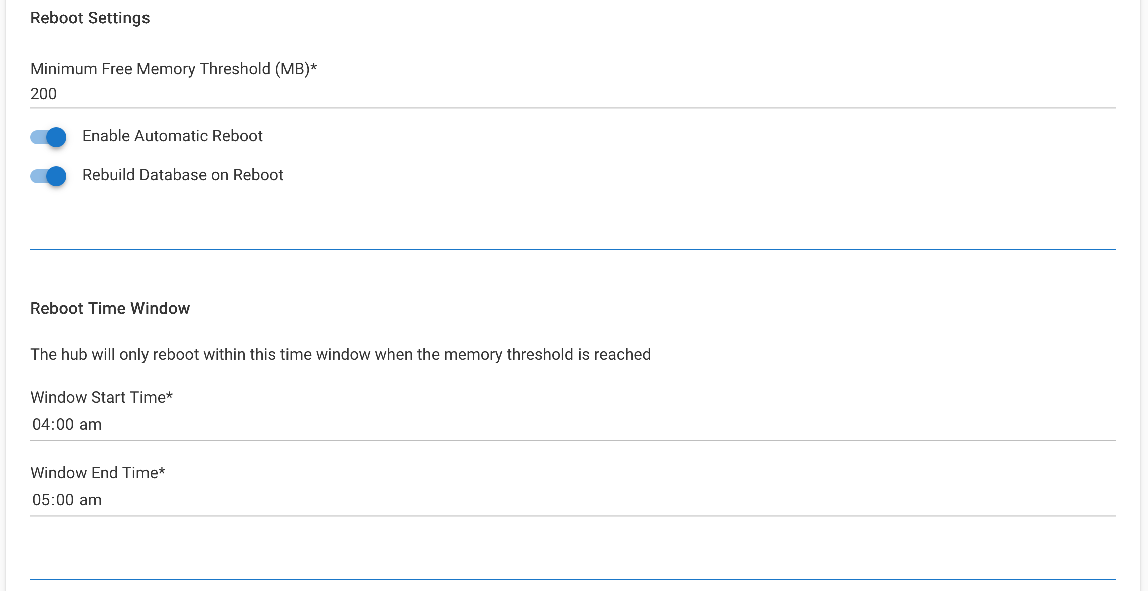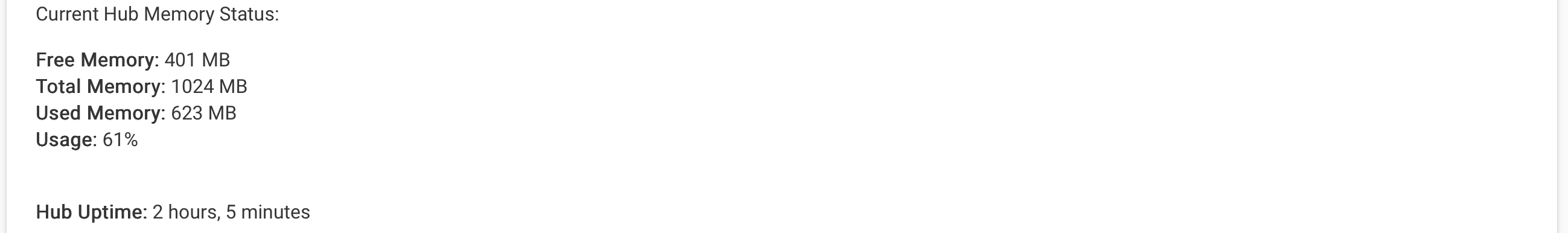 2026-01-01 v1.1.0 - Simplified memory detection to use actual total RAM from hub data v1.0.5 - Added hub uptime display and periodic scheduled reboot feature v1.0.4 - added import url and updated endpoint for reboot with DB rebuild v1.0.2 - Added option to rebuild the Database on reboot