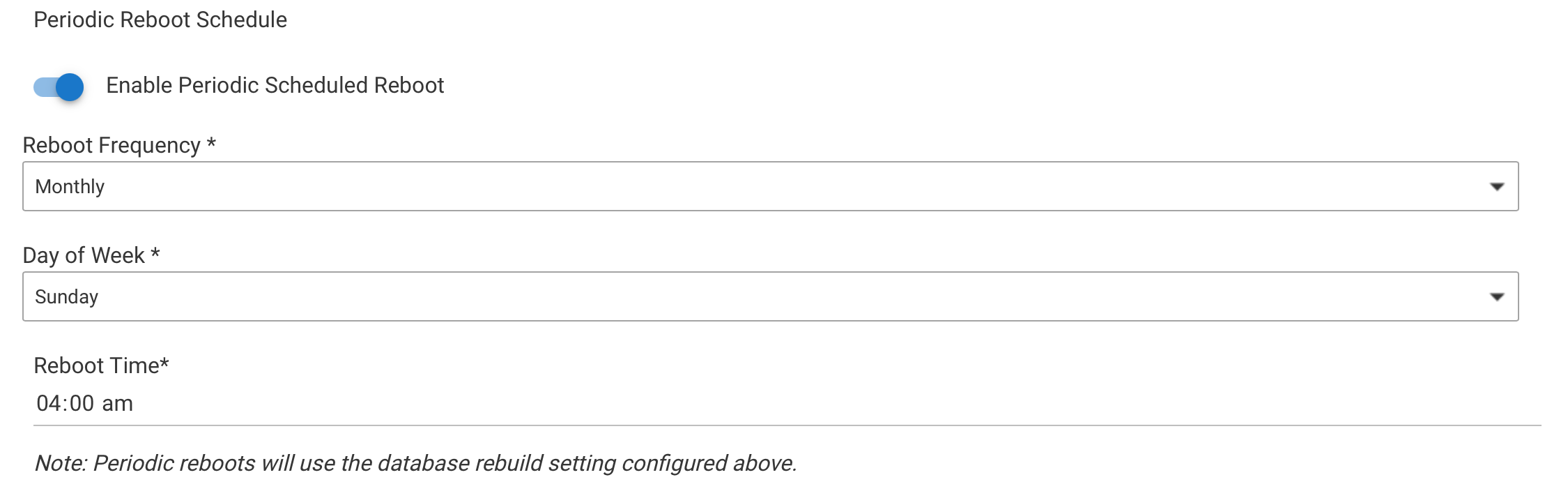 Option to rebuild the database as part of the reboot.