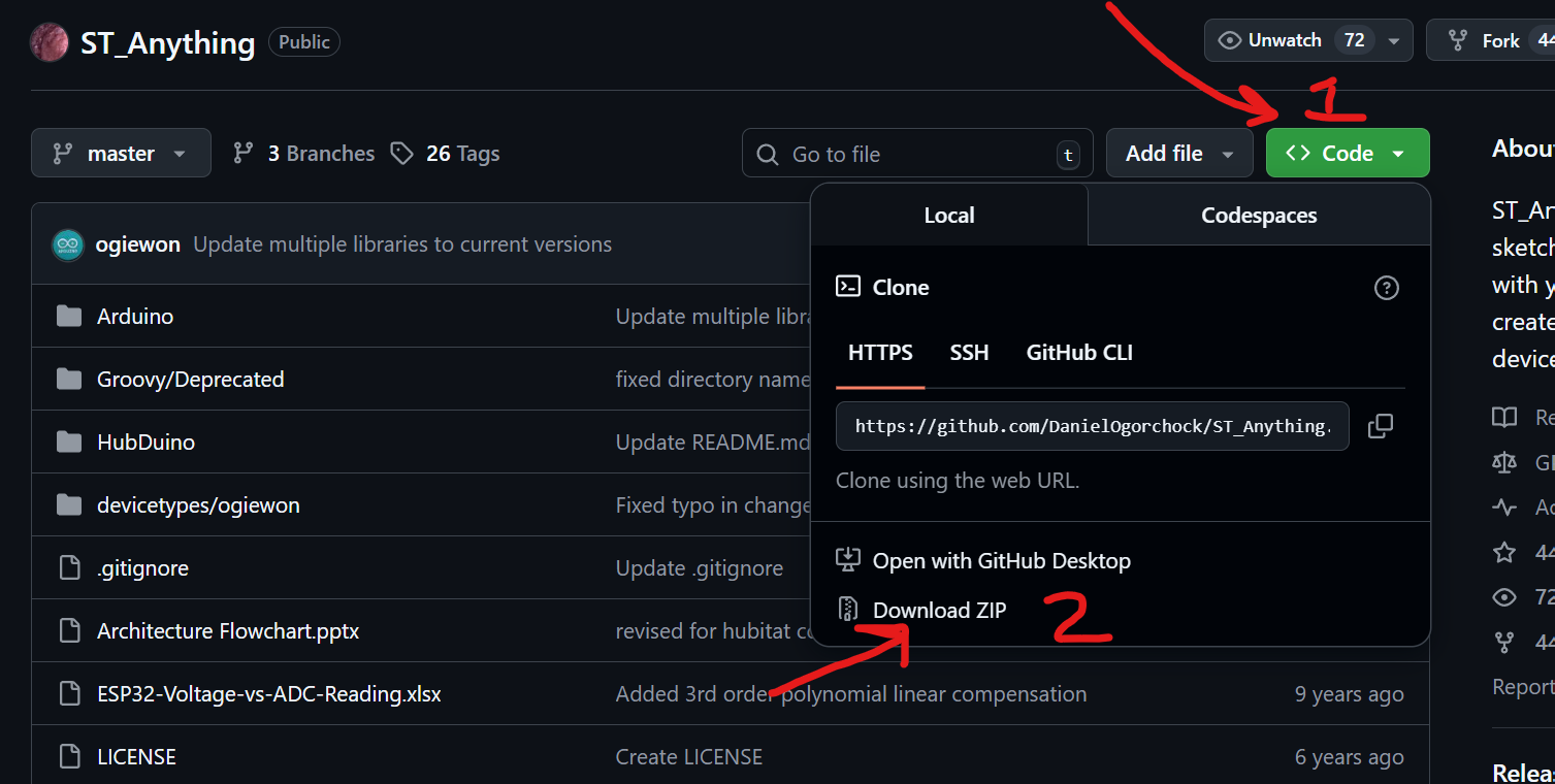 The ST_Anything Arduino code (sketches and libraries) is the code that gets copied into your local PC's Arduino folder.