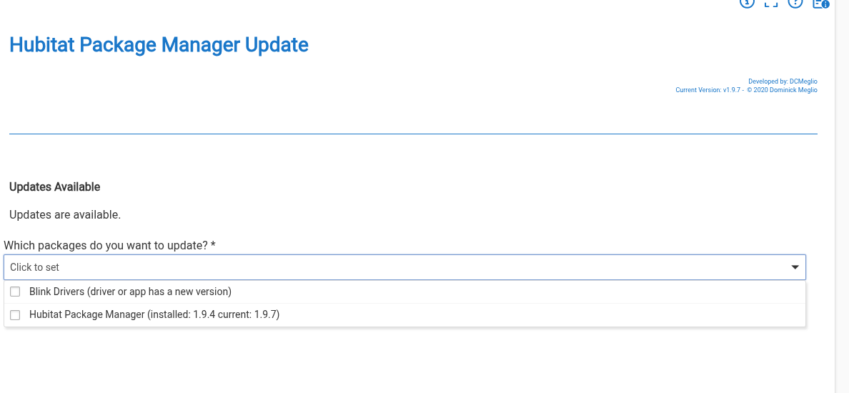 As noted above, updating HPM itself can result in the hub appearing to not complete the update. As explained, the upgrade works, causing the code to shift and throw an error as it tries to execute code that isn't in the same logical location after the upgrade. Simply click the Apps button in the left menu and start HPM again. You'll see the latest version in the upper right corner.