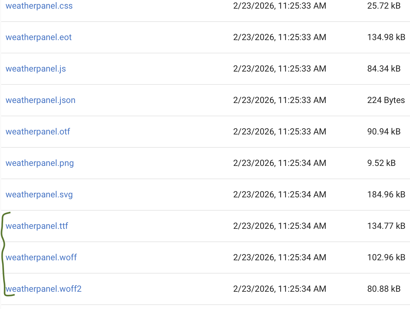 This is after doing a repair of the the app using HPM 1.99, IDK why the files size have changed, but I do know they don't load properly in some browsers when they are the larger size. I am assuming this is file corruption, but I don't know fonts well enough to understand what has been added. Just that the file size is different, and it stops working in some browsers.