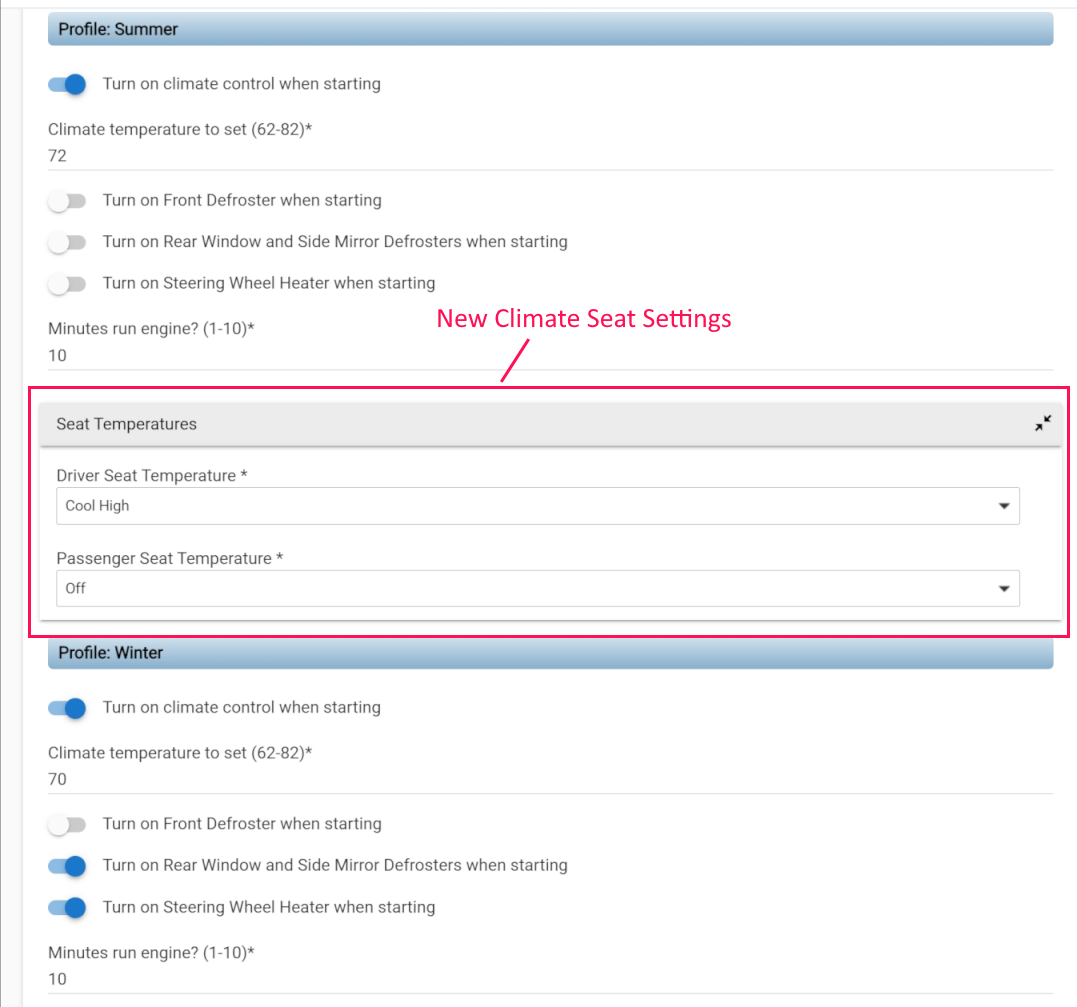 Here is a screenshot of part of the profiles page from the app, showing the new seat settings: