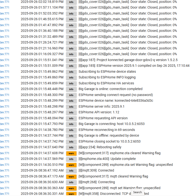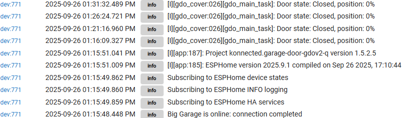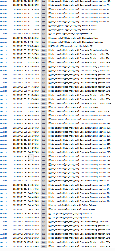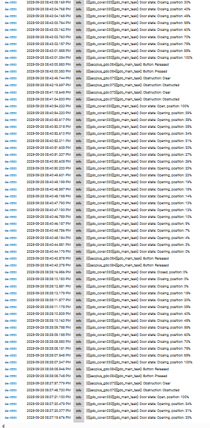 It makes it hard to use the Hubitat logs when one device (this one) overwhelms every other log entry due to the sheer volume of these unnecessary logs. For example, if I am trying to log a Rule Machine rule, the logs of the Konnected GDO over the course of a day will have so many events logged that the Rule Machine log no longer exists due to it being pushed off the bottom of the logs whereby the Hubitat hub prunes the logs.
