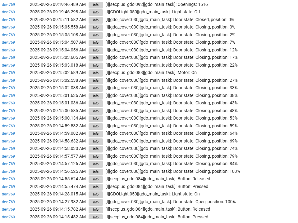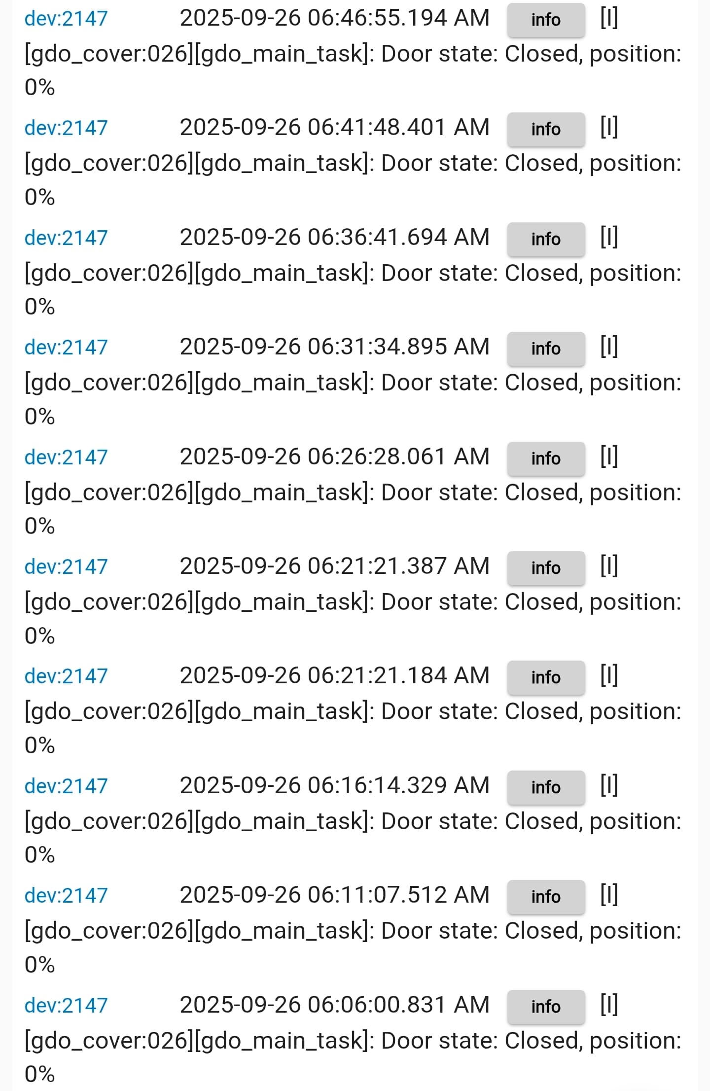 @nate I posted on the Konnected community as well but I'm not sure where is the best place to reach out. Did you ever get anywhere with adding an info logging toggle? I recently updated the firmware on my blaQ GDO and it now reports the door status every 5 minutes. Any info would be greatly appreciated!