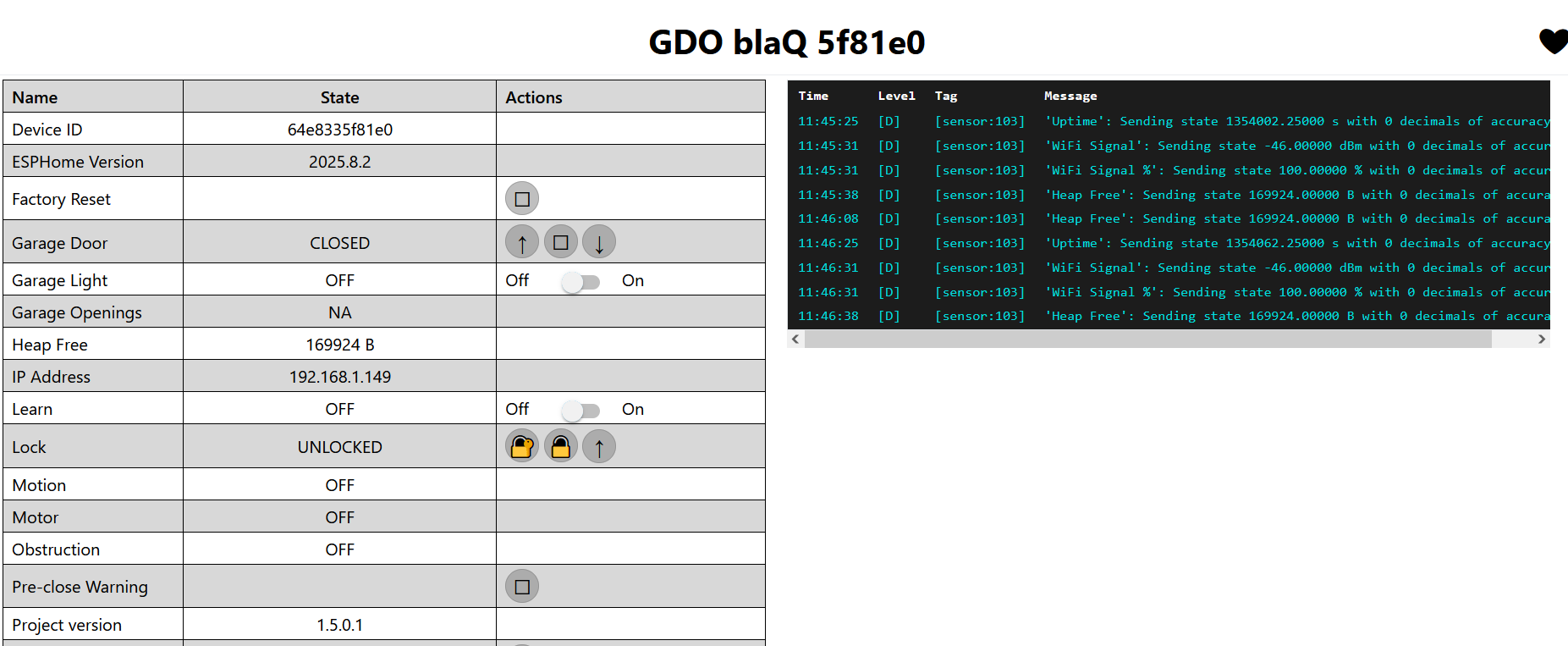 Ok I've just updated the GDO blaQ firmware to be far less chatty at the INFO level in firmware version 1.5.3. Basically I just moved all the logging to DEBUG which it really should be anyway. By default Hubitat won't subscribe to DEBUG so this should solve a majority of the excess logs that you guys shared in the screenshot above.
