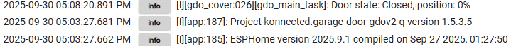 I'll see about adding a logLevel option to replace the logEnable boolean in the ESPHome driver next time I revisit that code. Or, if anyone wants to do it and open a pull request that's accepted I will send you a free GDO. ESPHome library and Konnected device drivers