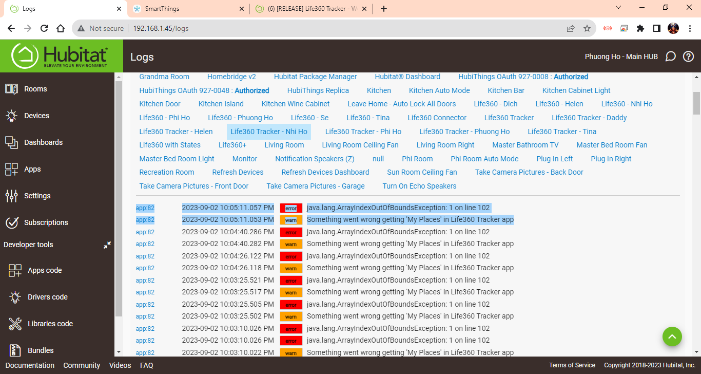 app:822023-09-02 10:05:11.053 PMwarnSomething went wrong getting 'My Places' in Life360 Tracker app