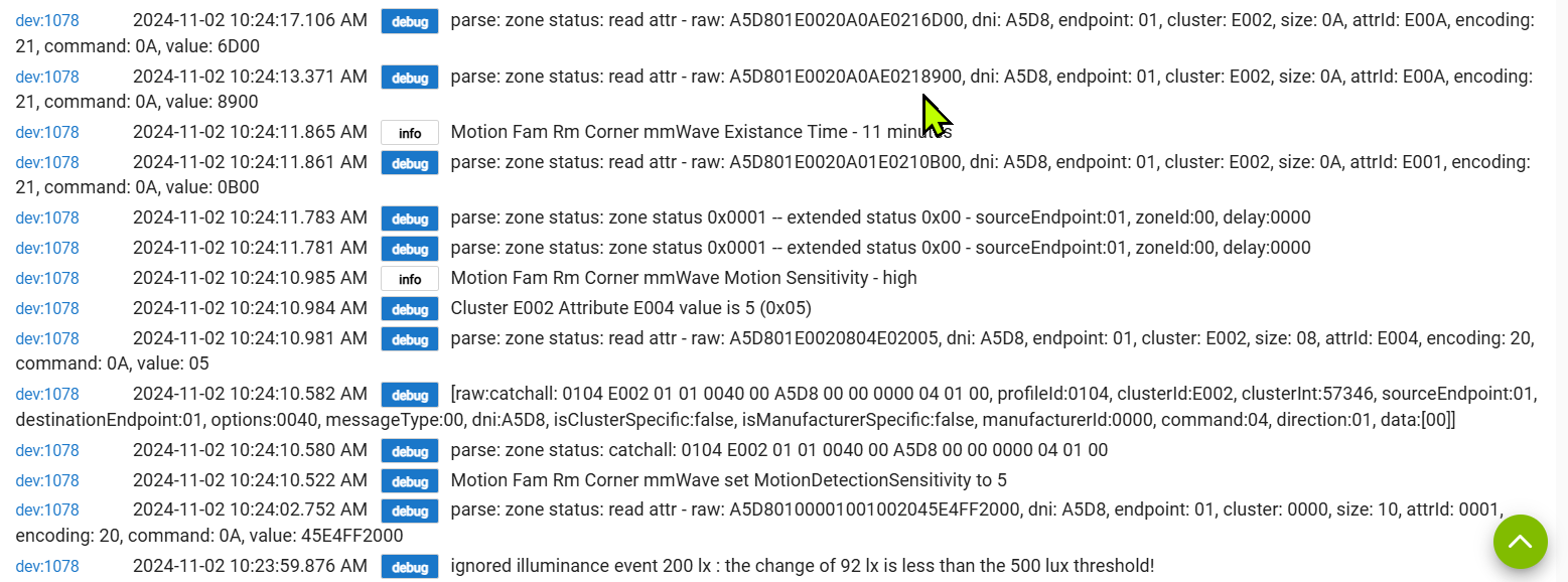 Is it doing what you hoped? I don't see it going to inactive, and the active minutes timer is at 11m after the change back to High, I'd assume from what you said that if the setting change worked to force re-calibrate that the active timer would restart. Should this setting change work w/both Gassgs driver (which I'm using), and your mmWave driver as well?