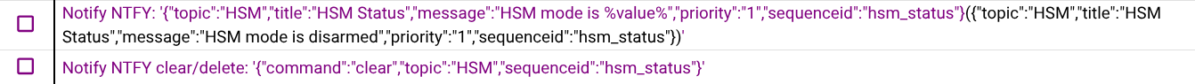 - This could also be used to keep a persistent status notification, for example, use a rule to send the HSM status to topic=hsm sequence-id=hsm_status each time it changes. The notification in the hsm topic will always show the current HSM status. The old ones won't clutter up the history.