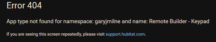 Something I'm doing wrong? Never had a 404 in Hubitat before.