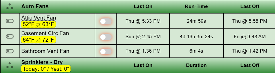 I can now show the temperatures that control an automatic fan within the grid so I can check their operation.