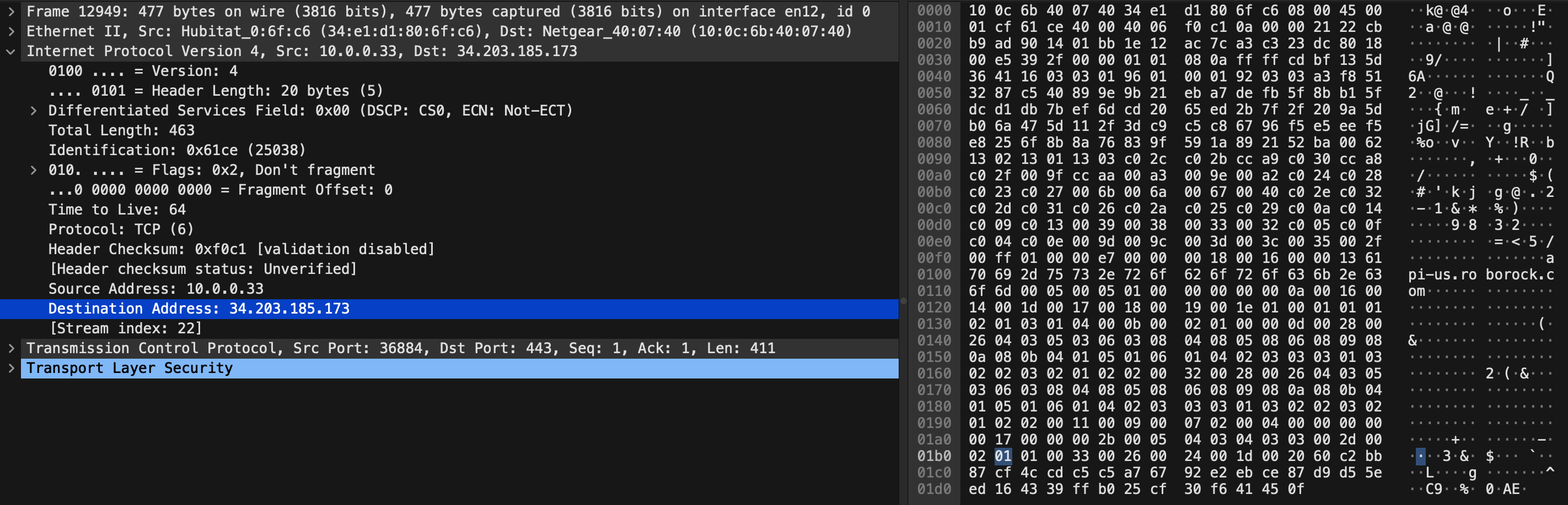 Here is the wireshark of Hubitat resolving CORRECTLY to an IPv4 (34.203.185.173) AFTER the reboot and the driver is happy