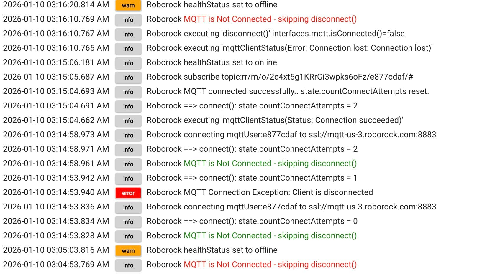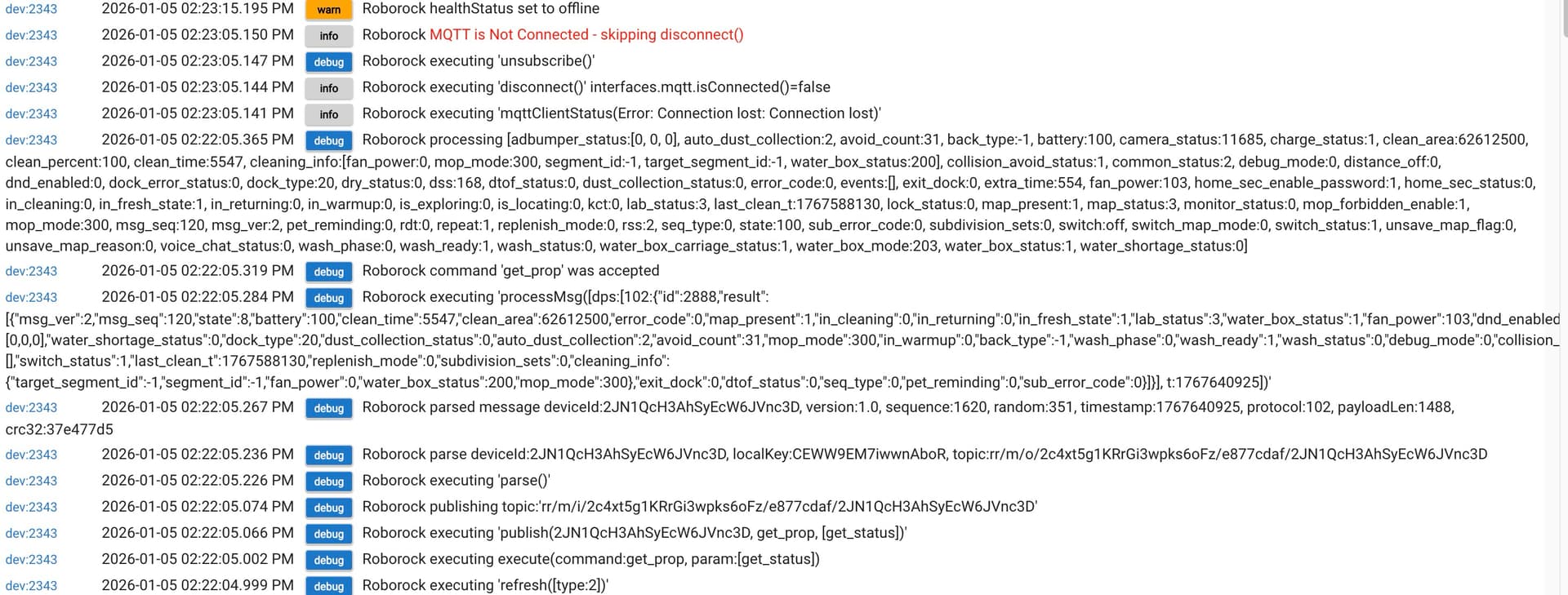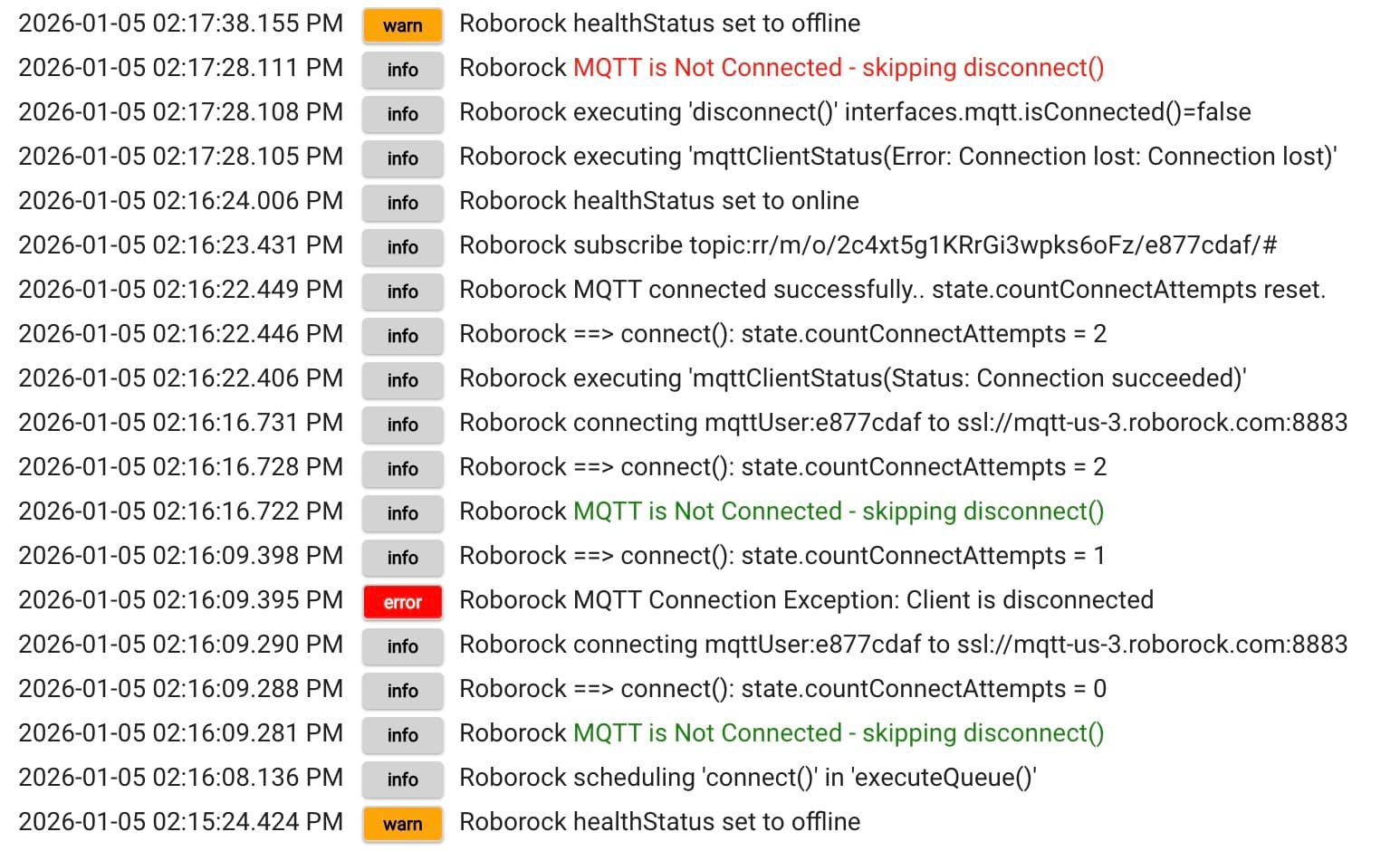 Hi, I'm in the uk and I've been trying to get my Roborock Q10 S5 working with this driver and hitting a wall. Authentication works fine (including the email code flow), but I can't get the vacuum to show as online despite it being visible and controllable in the Roborock app.
