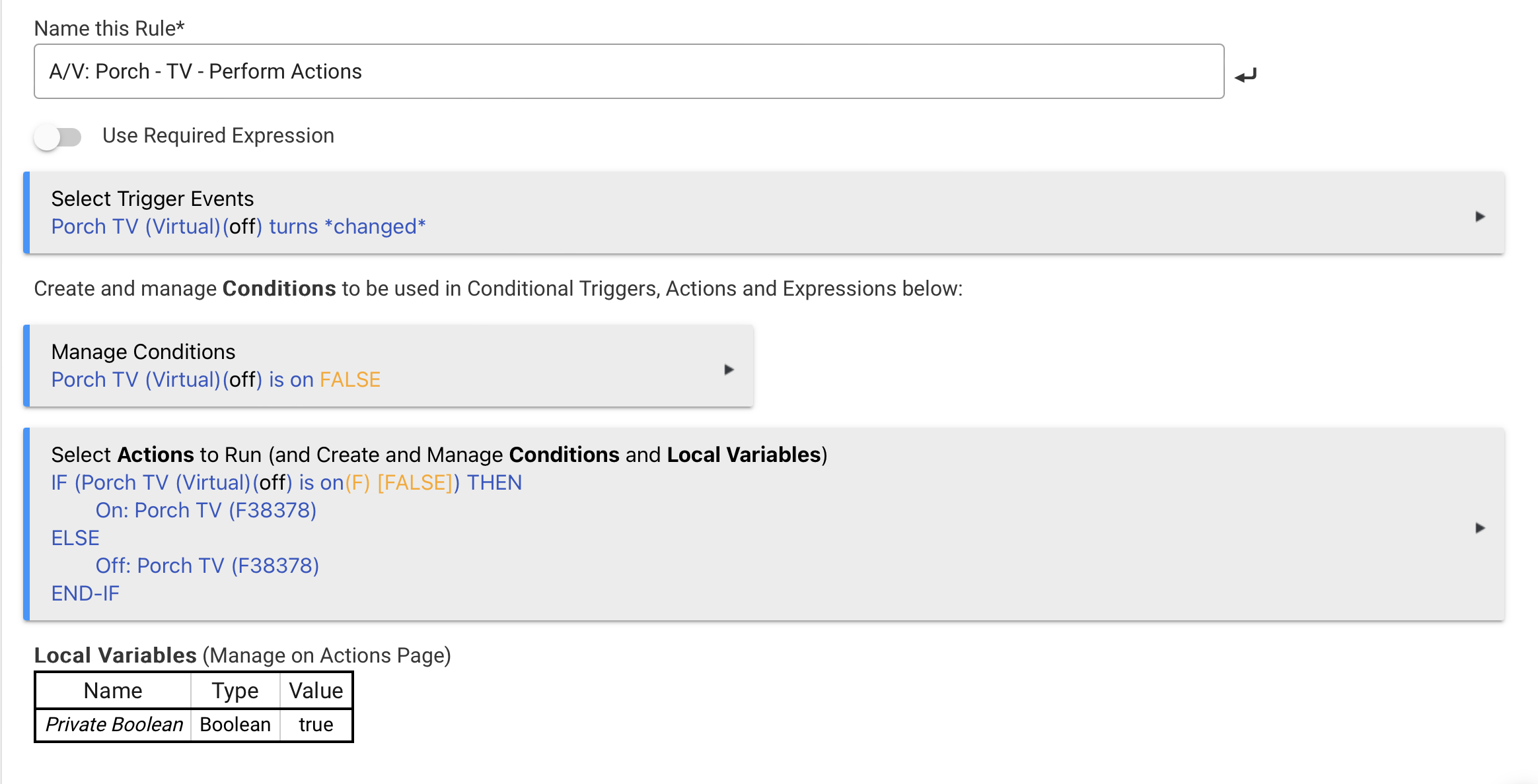 I am trying to do some very basic things. Turn on the TV - which you see in the rule. And then after the TV is turned on to set the input source for the TV. Normally I would expect to use Run Custom Action, then Actuator, then select this button and specify a string to pass to it. But maybe I have this all wrong? Thanks for the help.