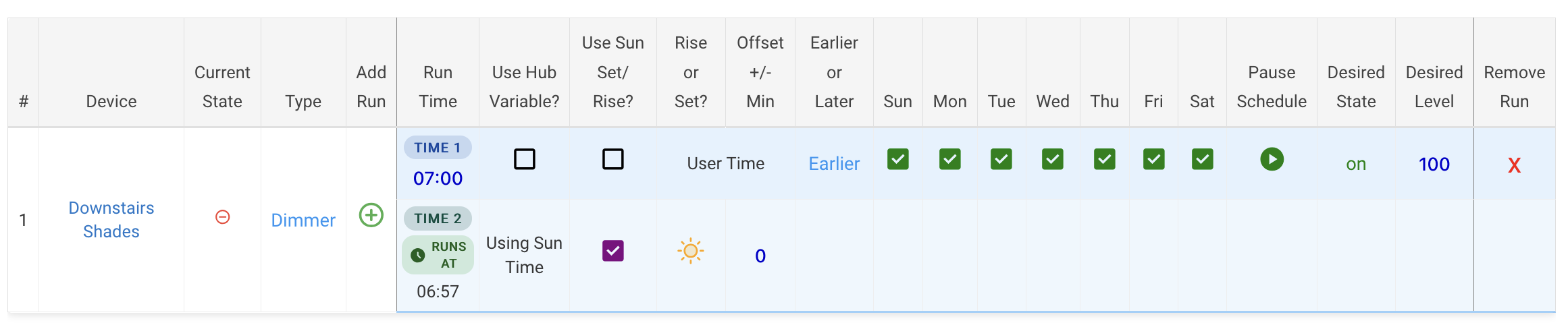 I have the spreadsheet built. I have existing RM rules that currently control the shades using a different approach. I feel like I'm almost to a solution. Do you know how to pull time data from a Google Sheet and parse it for use as a trigger in RM or in your app? Does your app already do that? If not, could it be added?