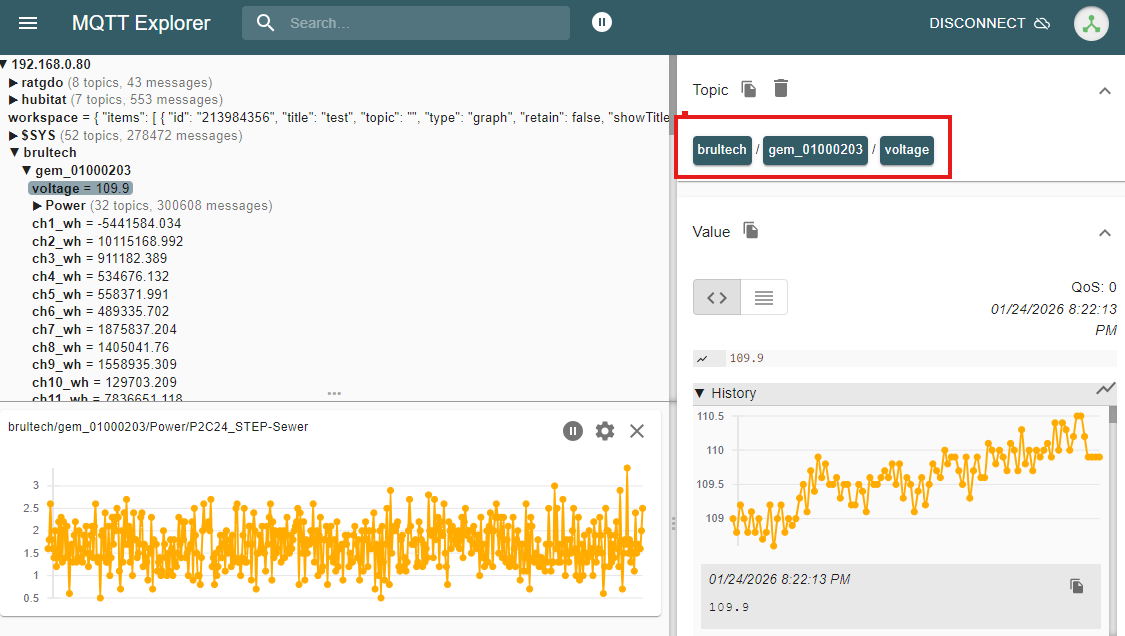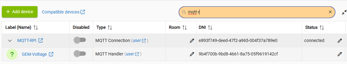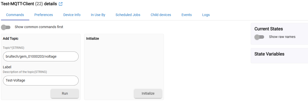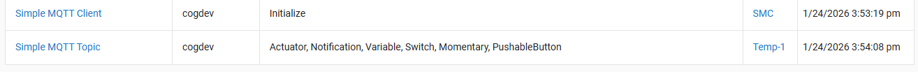 Once you register a topic, it appears as a child device under the MQTT client. This allows you to use the topic in several ways.