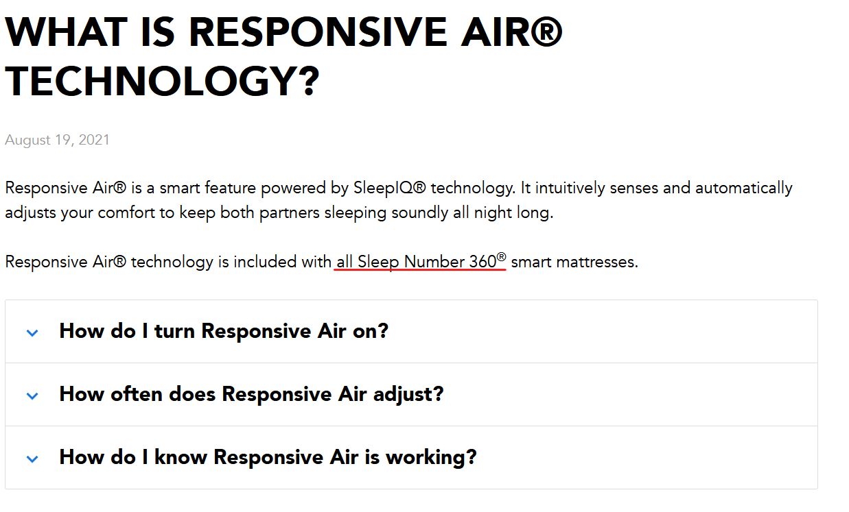 Responsive Air® is a smart feature powered by SleepIQ® technology. It intuitively senses and automatically adjusts your comfort to keep both partners sleeping soundly all night long.